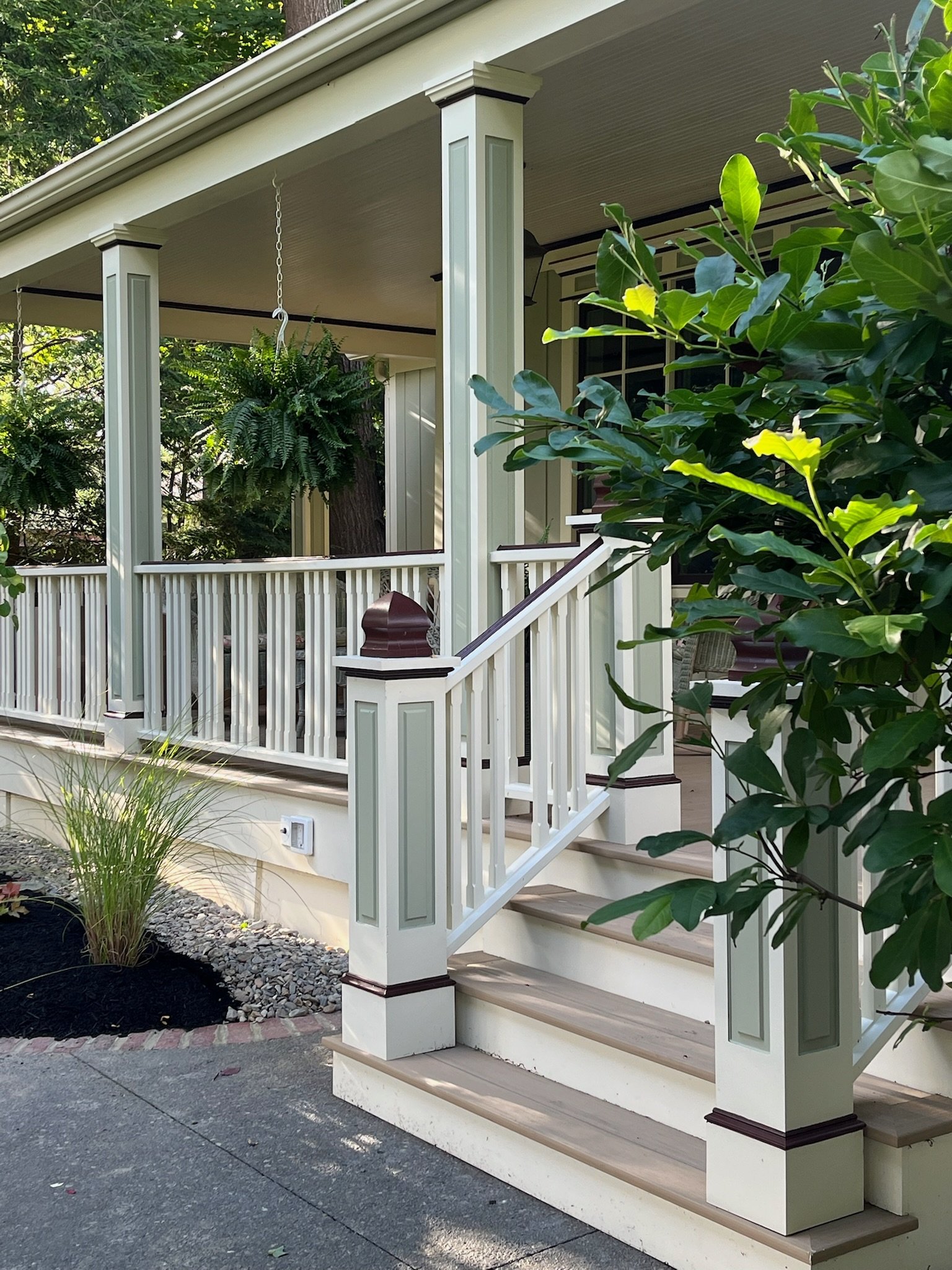Another collaboration with architect Diane Hendrix, this renovation includes enclosing a second-story porch to expand a bathroom, and new kitchen cabinets and countertops.